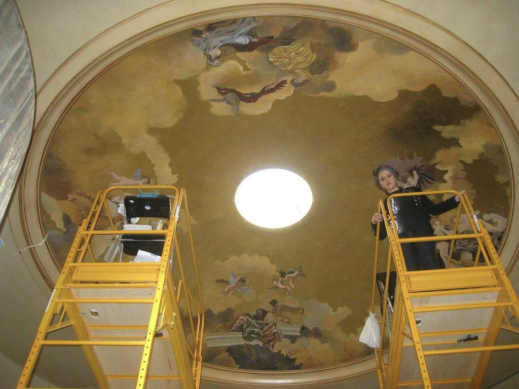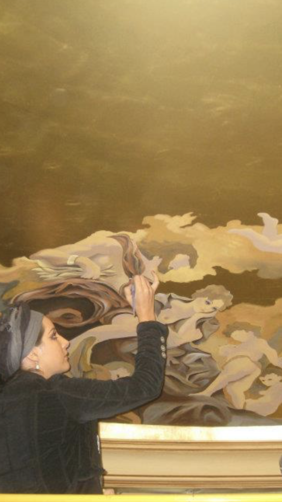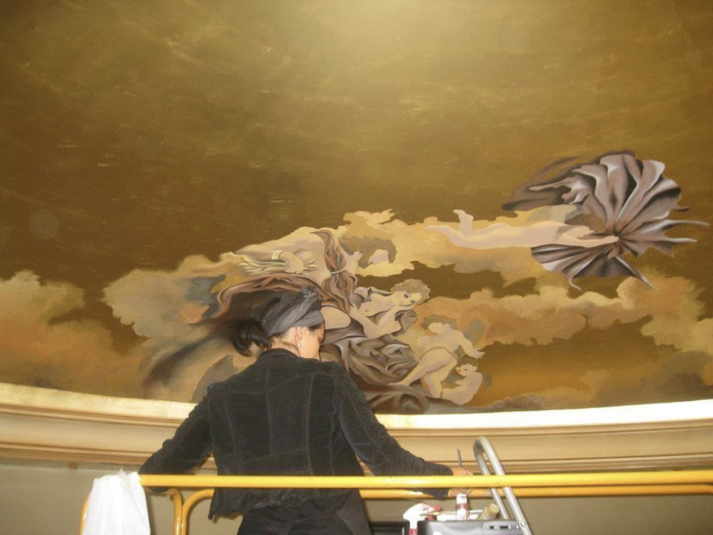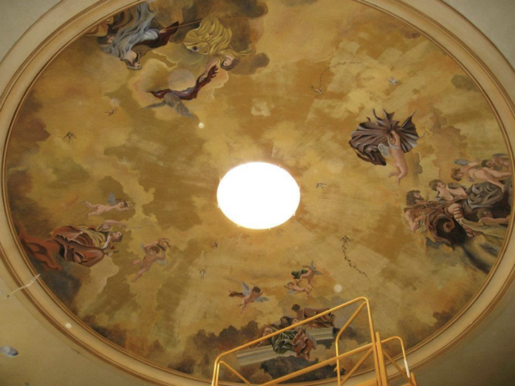 "Discover stunning skies hand-painted with 24k gold leaf, birds, angels, and figures inspired by Michelangelo. A unique blend of luxury, classic art, and elegance."